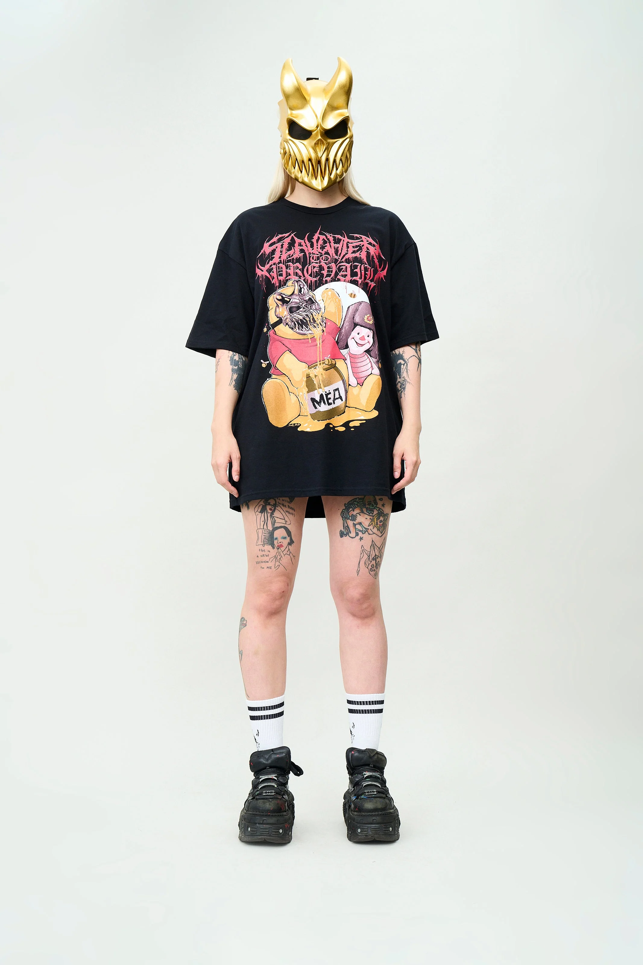 Unleash your inner brutality with this brand new Winnie the Pooh shirt from Slaughter To Prevail! Featuring a front print of cute bears this shirt is perfect for any fan of extreme metal. The shirt is soft and comfortable, and the print is high-quality and durable.